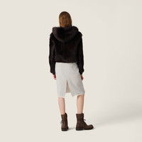 This luxurious shearling jacket with a slightly cropped silhouette is enhanced by the long fur that adds volume and underlines its sophistication. The enveloping, fluffy style reinterprets a classic woman's garment with a contemporary twist. - Product code: MPV962_177Y_F0003_S_OOO - Regular fit - Lined garment - Front zipper closure - Collar with hood - Straight sleeves and ribbed knit cuffs - Wide welt pockets - Ribbed knit hem - Imported - The model is 180 cm tall and wears a size 38 Materials Main material: Lambskin