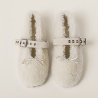 The classic style of the ballet flat is enriched by the soft, voluminous touch of shearling. The play of contrasts with the buckle enhances the refined character of the style. - Product code: 5F272E_173_F0018_F_005 - Upper with strap with buckle - Screen-printed logo on insole - Rubber sole - Leather-covered insole - Imported Materials Main material: Lambskin