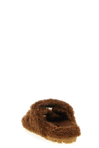 cod. 5XX663F010173F0324 Shearling sandals, sheepskin shearling lining, adjustable velcro bands with metal lettering logo applique, and rubber sole. Color: Brown Size & Fit: EU WOMEN Composition: 100% Ovis Aries Made in: Italy