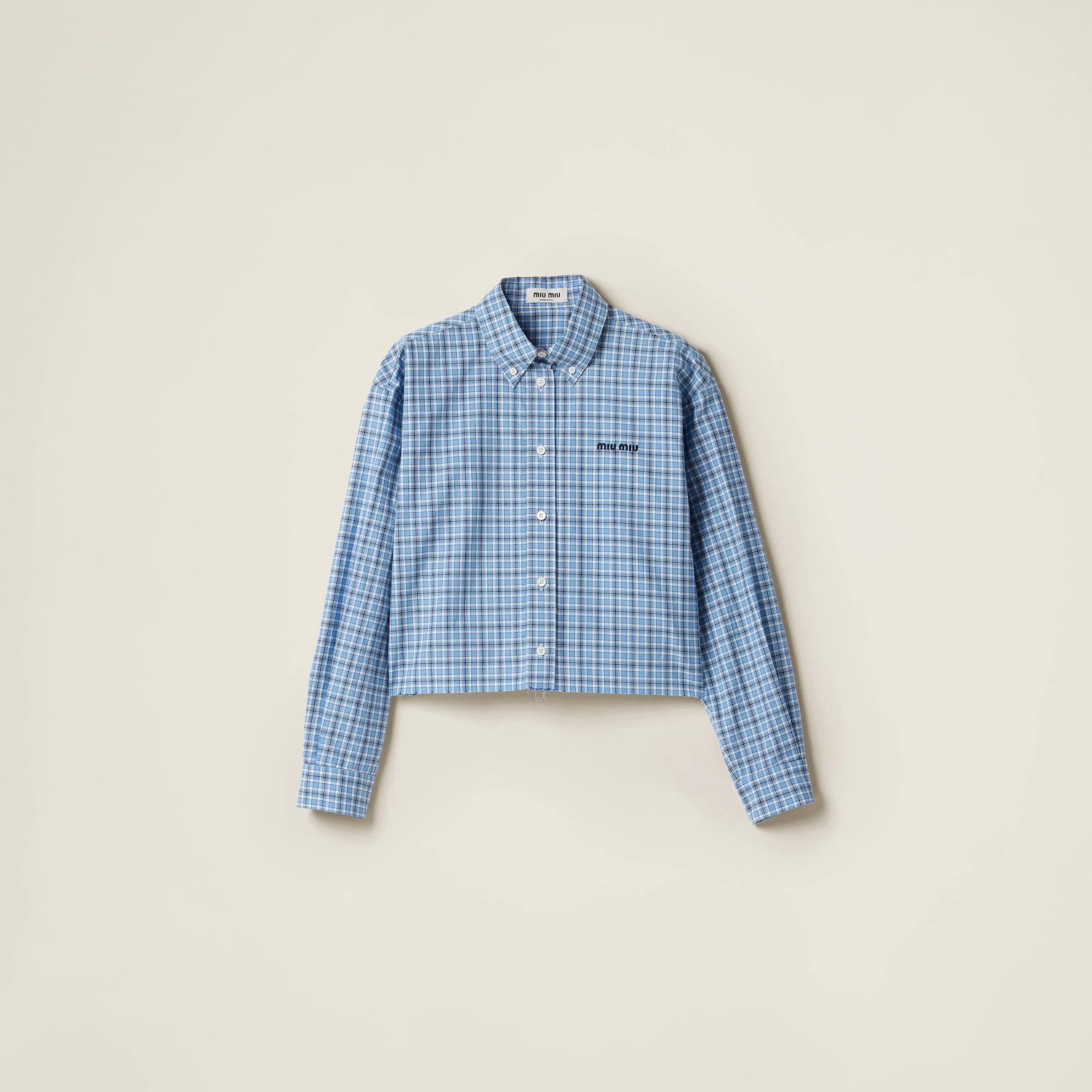 This checked poplin shirt is enhanced by the boxy fit and the raw-cut hem, elements that reflect Miu Miu's experimentation with menswear. - Product code: MK1659_16MK_F0QY6_S_OOO - Boxy fit - Button-down collar - Front button closure - Long sleeves with buttons - Raw-cut hem - Embroidered logo - Imported - The model is 177 cm tall and wears a size 38 Height 53cm Materials Main material: 100% Cotton