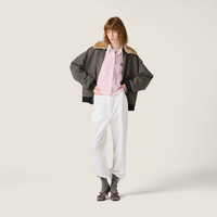 The classic men’s shirt is reinterpreted in this poplin version with a slightly cropped fit, enriched by detachable collar and cuffs that add character and versatility to a Miu Miu wardrobe icon. - Product code: MK1971_10RG_F0028_S_OOO - Loose fit - Shirt collar - Embroidered logo - Imported - The model is 181 cm tall and wears a size 38 Materials Main material: 100% Cotton