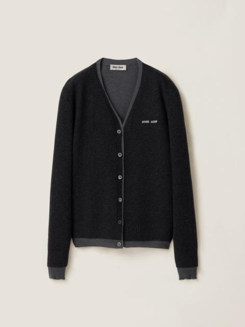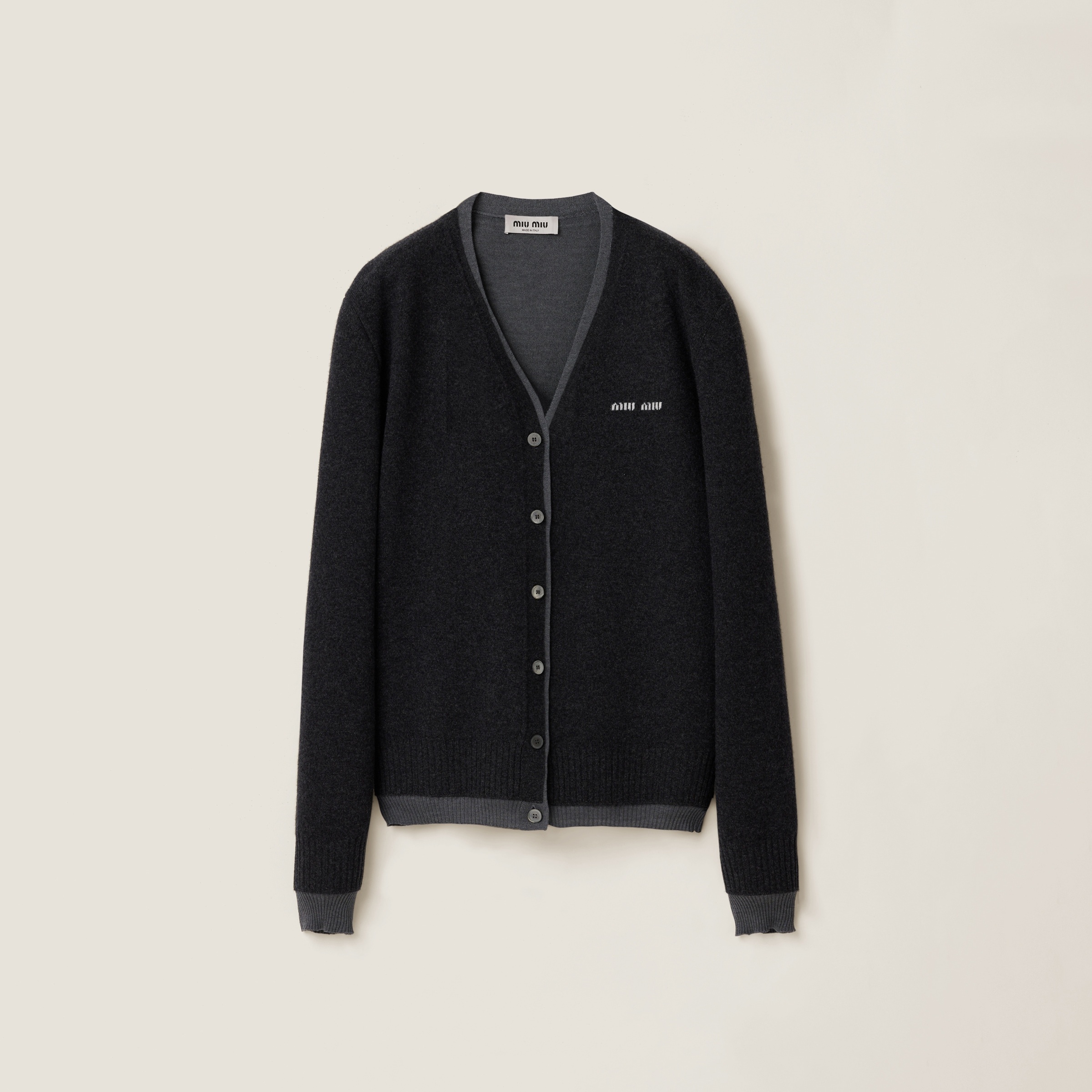 This menswear-inspired cardigan is made from cashmere and silk with a classic cut, accented by contrasting trims. - Product code: MMF918_15RK_F0G55_S_OOO - Long sleeves - Satin motif - Over fit - English shoulder - Ribbed knit at cuffs and hem - Inlay logo - Front button closure - Two-part design - Cashmere upper part and silk lower part. - Imported - The model is 178 cm tall and wears a size 38 Height 66cm Materials Main material: 100% Cashmere