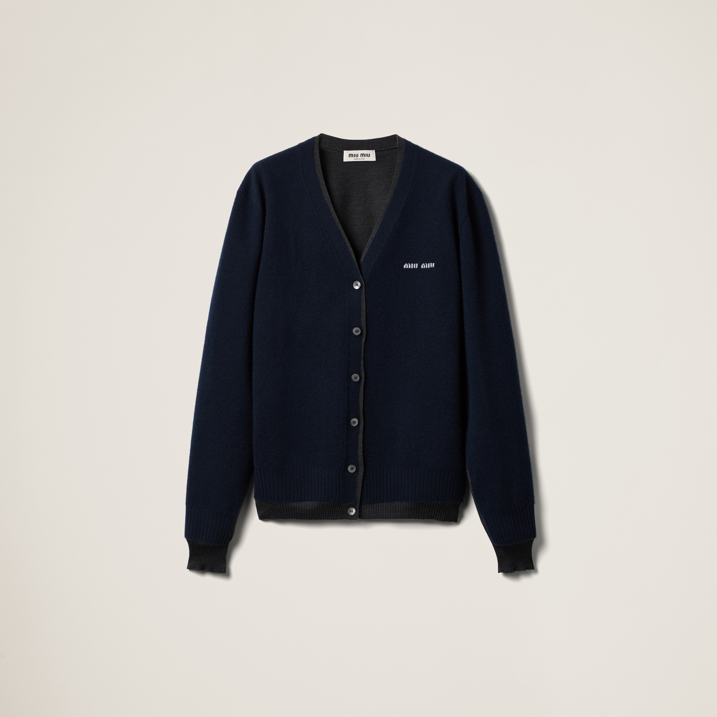 This menswear-inspired cardigan is made from cashmere and silk with a classic cut, accented by contrasting trims. - Product code: MMF918_15RK_F095J_S_OOO - Long sleeves - Satin motif - Over fit - English shoulder - Ribbed knit at cuffs and hem - Inlay logo - Front button closure - Two-part design - Cashmere upper part and silk lower part. - Imported - The model is 178 cm tall and wears a size 38 Height 66cm Materials Main material: 100% Cashmere