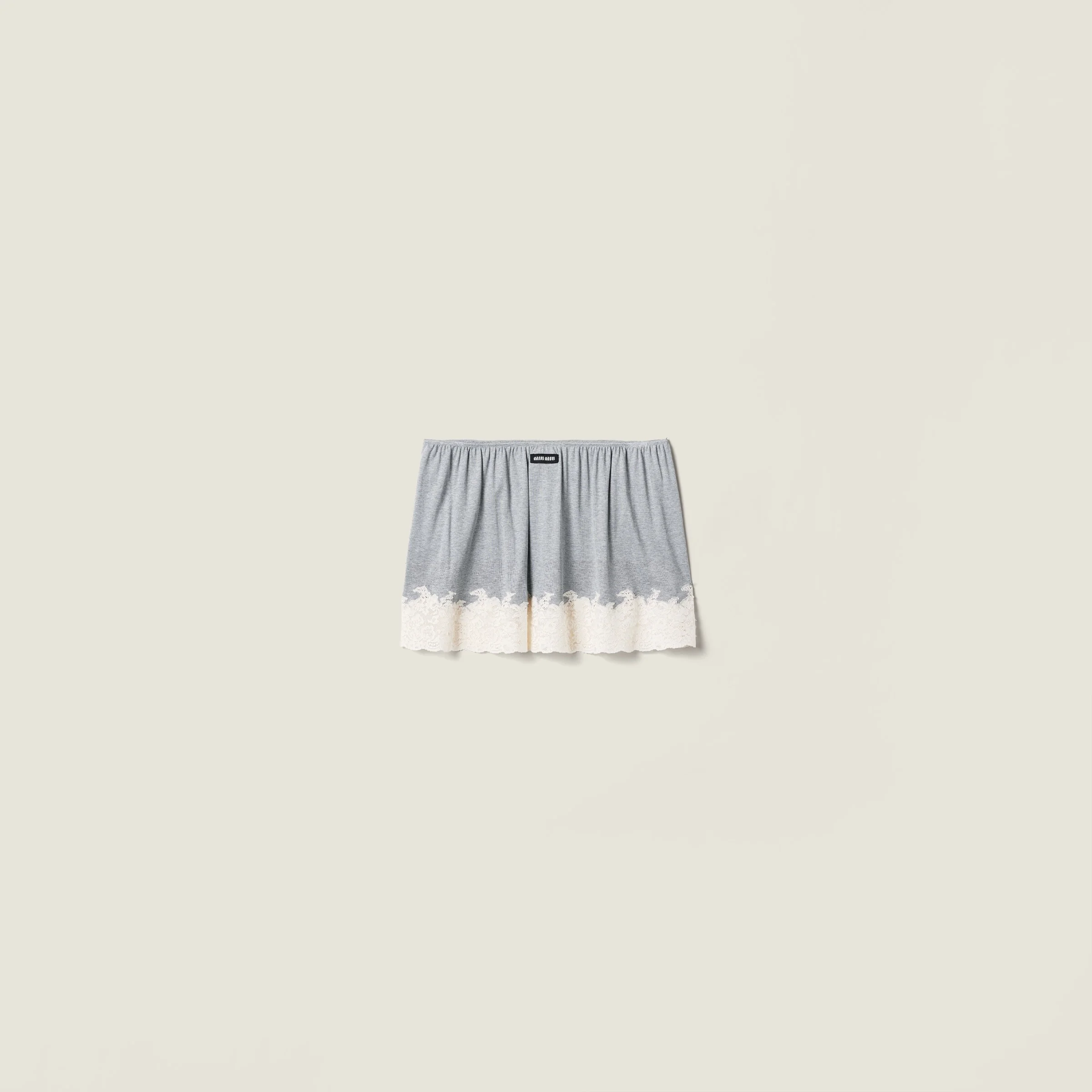 The lightness of the silk jersey defines the fluid and feminine silhouette of this skirt, enhanced by a delicate floral lace hem that highlights its refined craftsmanship and versatility. - Product code: MG2644_19E1_F0031_S_OOO - Flared fit - Unlined garment - Jacquard logo label - Imported Height 30cm Materials Main material: 100% Recycled Silk
