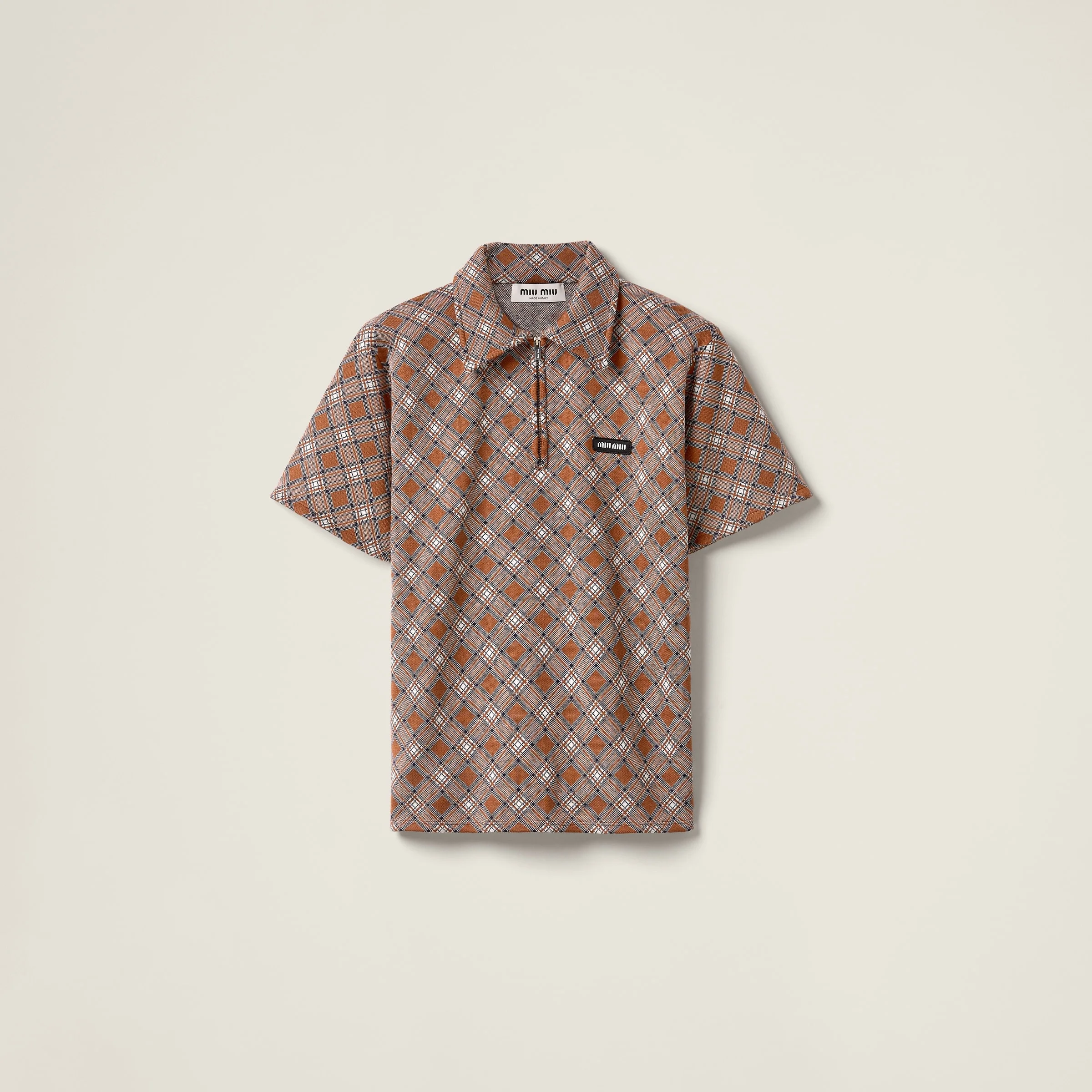 Inspired by the styles of the 1970s, this extra fine silk pique polo shirt combines allure and modernity, stylishly completing looks with impactful layering. - Product code: MMLA80_16XB_F0005_S_OOO - Jacquard knit - Slim-fit silhouette - Short sleeves - Regular shoulder - Front zipper closure - Knit logo patch - Imported - The model is 177 cm tall and wears a size 38 Height 51cm Materials Main material: 100% Recycled Silk