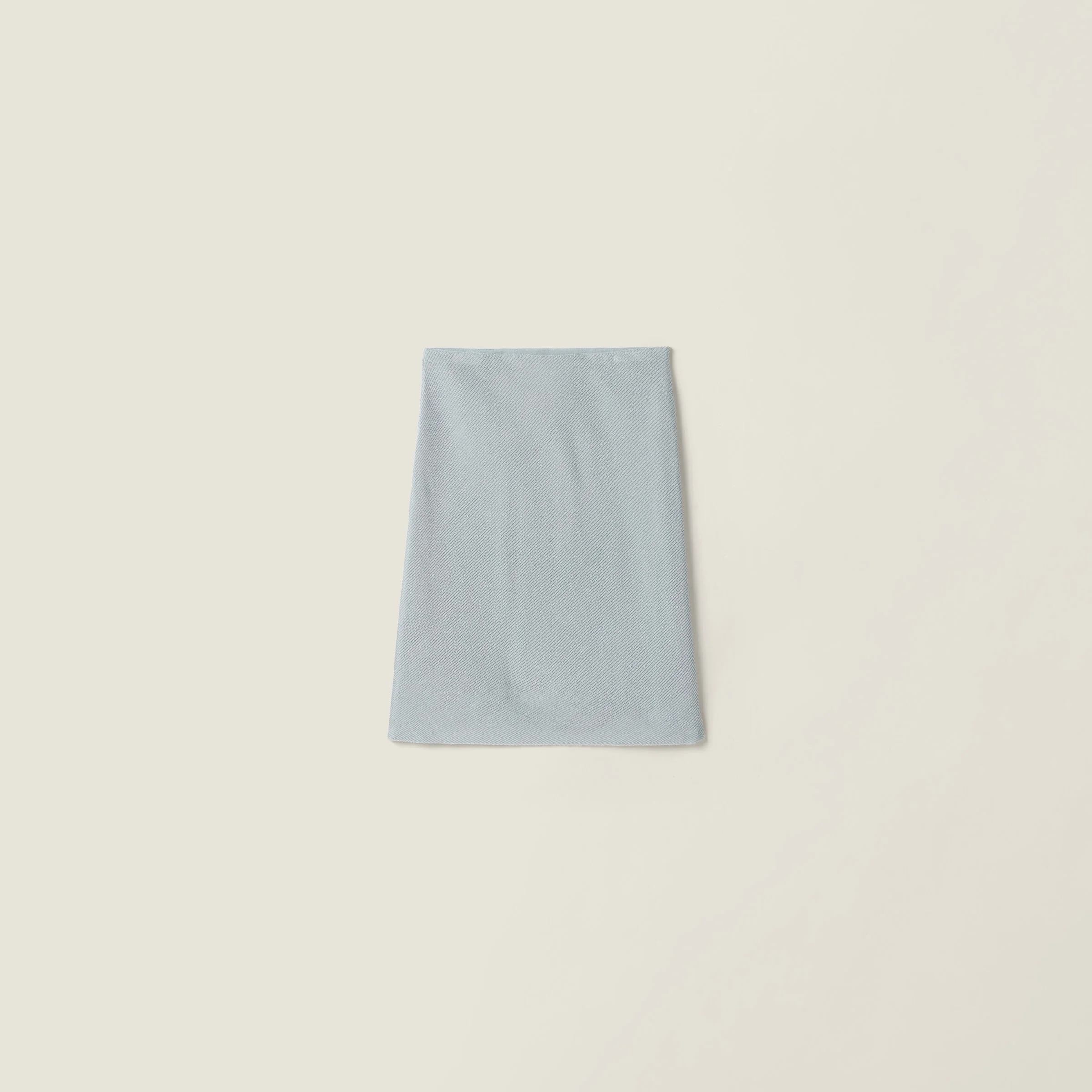 Delicate silk transparency and a minimalist cut come together to reinterpret the sophisticated femininity of this mid-length skirt, where sleek tailoring meets vibrant color in bold, layered looks. - Product code: MMG570_18BP_F0M10_S_OOO - Ribbed knit - Flared fit - Knitted logo patch - Imported - The model is 177 cm tall and wears a size 38 Height 54cm Materials Main material: 100% Silk