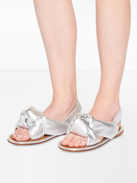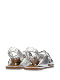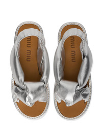 knotted flat sandals The bigger the better this season. Crafted in mordore nappa leather, these silver-tone slingback flat sandals from Miu Miu's SS20 collection are characterised by their thick knotted straps. Forget slim and go big. Featuring a knot detail, a slingback ankle strap and a flat sole. Composition Lining: Calf Leather 100% Sole: Calf Leather 100% Outer: Nappa Leather 100%