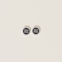 These romantic, minimalist earrings are decorated with the Miu Miu lettering logo at the center. - Product code: 5JO912_2F6T_F0632 - Metal and colored enamel - For pierced ears - Visible logo - Imported Width 1.5cm Length 1.45cm Materials Main material: Enamel Brass