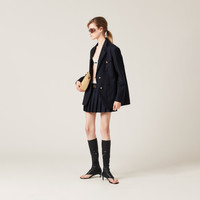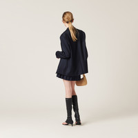Miu Miu's rebellious personality reinvents the classic tailored jacket. The different top and bottom pockets, a common thread of the SS23 Collection, coexist harmoniously with the traditional lapels while gold buttons add a shiny touch to the garment. The embroidered logo behind the neck completes the look with an unexpected iconic note. - Product code: MH1862_11AD_F0008_S_232 - Classic fit - Lined - Classic lapel - Front button closure - Buttoned sleeves - Embroidered Miu Miu logo - The product fits up to one size larger - Imported - The model is 177 cm tall and wears a size 38 Height 75cm Materials Main material: 100% Virgin Wool