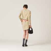 The curly texture of bouclé comes in refined colors on this single-breasted jacket. Gold buttons add shiny touches to the garment while the trim in a contrasting color is a refined detail. The embroidered logo completes the look with an iconic note. - Product code: MH1875_13LK_F0J33_S_232 - Cropped fit - Round neck - Front button closure - Straight sleeves with buttoned cuffs - Patch pockets - Embroidered logo - Unlined - Imported - The model is 178 cm tall and wears a size 38 - Height: 46cm