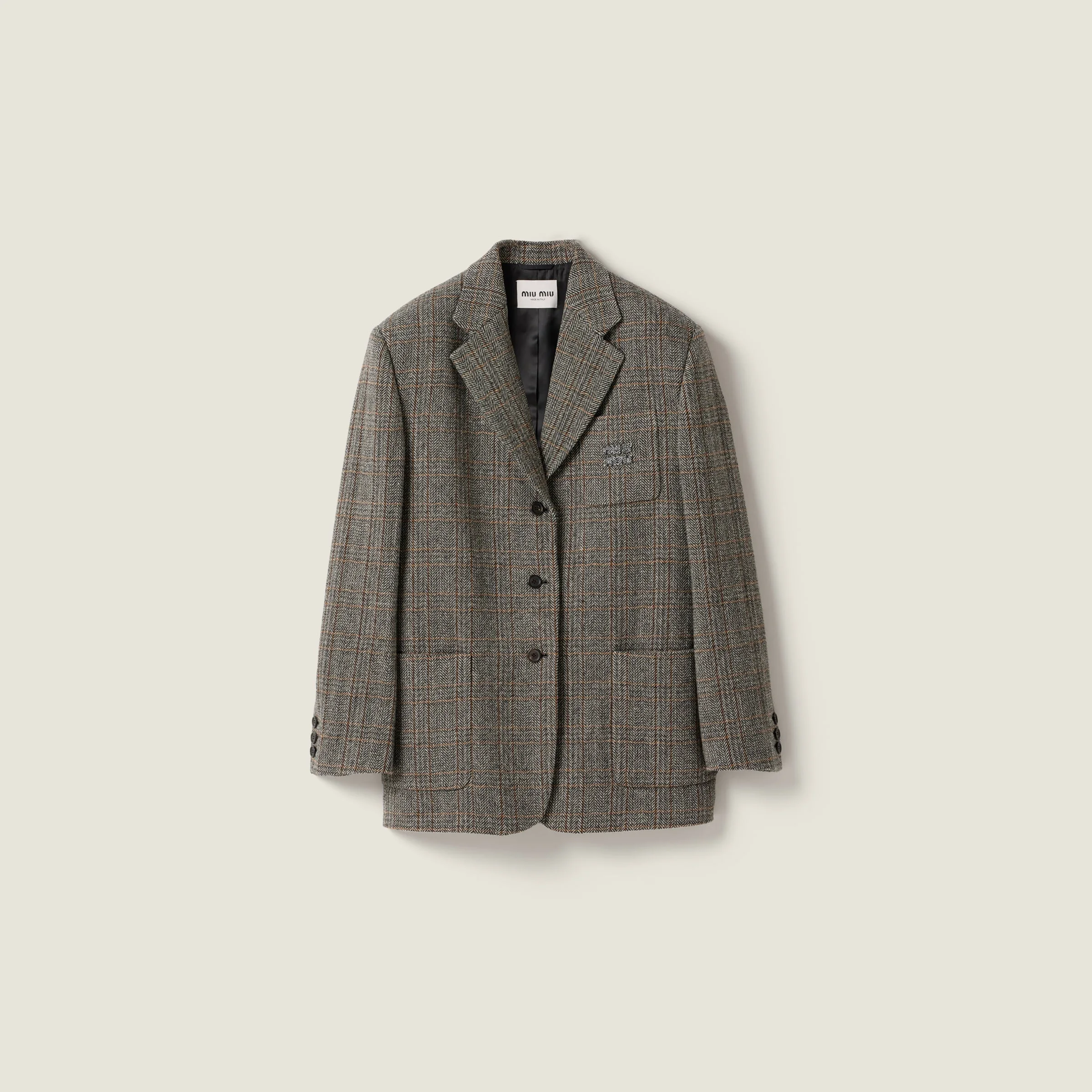 Iconic silhouettes from the Miu Miu wardrobe are reinterpreted through classic fabrics and refined details. This chevron jacket stands out for its relaxed fit and the tonal embroidered logo, elements that reflect a functional and sophisticated identity. - Product code: MH2008_16Q7_F0480_S_OOO - Oversized fit - Lined garment - Notch lapel - Front button closure - Straight three-button sleeves - Patch pockets - Back vent - Embroidered logo - Imported - The model is 180 cm tall and wears a size 38 Height 82cm Materials Main material: 100% Virgin Wool