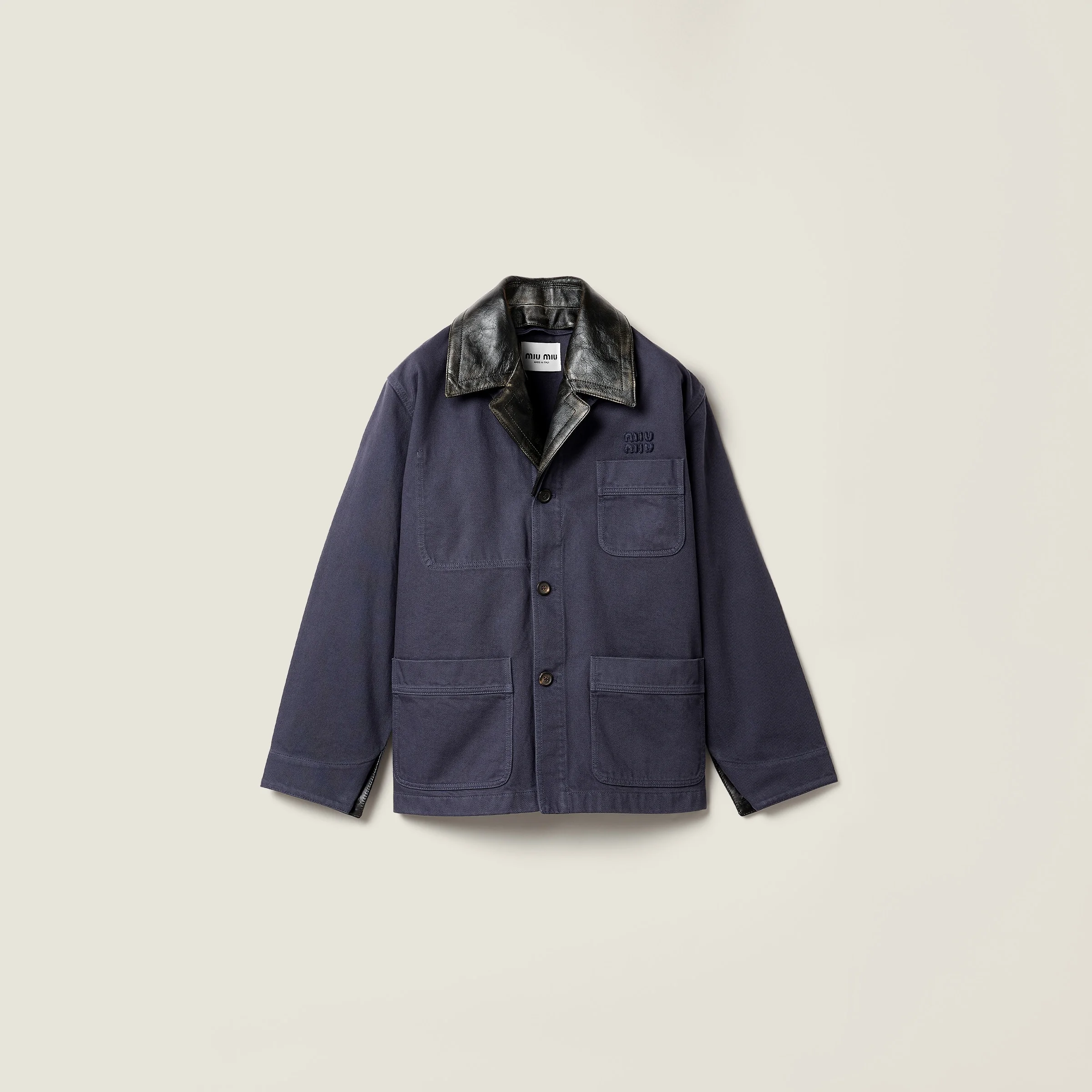 This jacket inspired by men's workwear expresses an authentic, vintage look thanks to durable, garment-dyed cotton gabardine with intense color. Leather details in a contrasting color add an unexpected, artisanal character. - Product code: MH2053_19R2_F063H_S_OOO - Straight fit - Unlined garment - Shirt-style collar - Front button closure - Straight sleeves - Patch pockets - Embroidered logo - Imported - The model is 180 cm tall and wears a size 38 Height 74cm Materials Main material: 100% Cotton