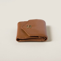 The quality of the leather and the iconic touch of the Miu Miu logo enhance the sleek lines of this new small leather wallet. Several internal compartments, card slots, and compact lines complete the design with functional details. - Product code: 5MH043_ADT7_F0046 - Metal lettering logo - One bill compartment - Four card slots - Two internal pockets - Internal coin pocket with flap - One external pocket -- Moire lining - Imported Height 8.5cm Width 10cm Materials Main material: Calfskin