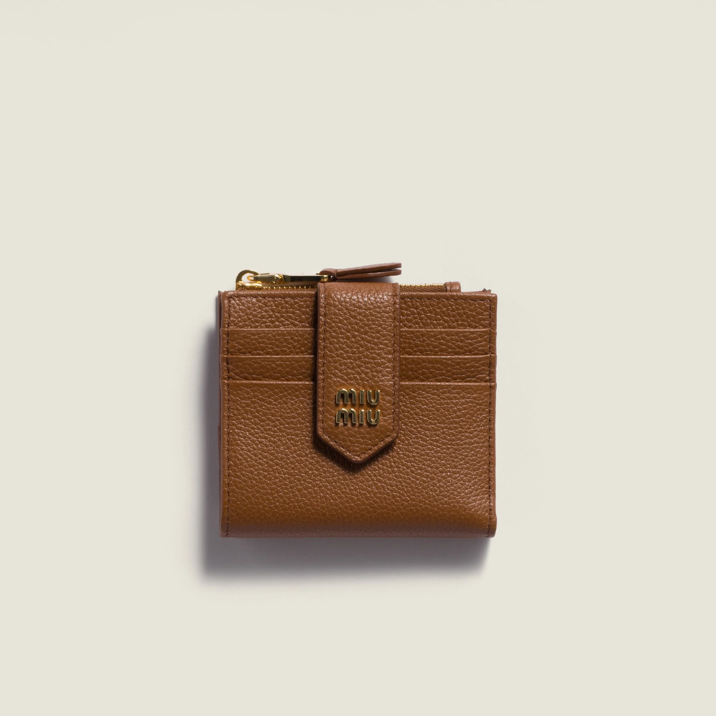 This sleek and compact wallet stands out for its functional compartments, the soft texture of the leather, and the refined closure with logo that make it a timeless accessory. - Product code: 5ML047_ADT7_F0046 - One bill compartment - Six card slots - Three internal pockets--Zipper coin pocket - Zipper and snap closure - Moire lining - Metal lettering logo - Imported Height 8cm Width 10cm Materials Main material: Calfskin