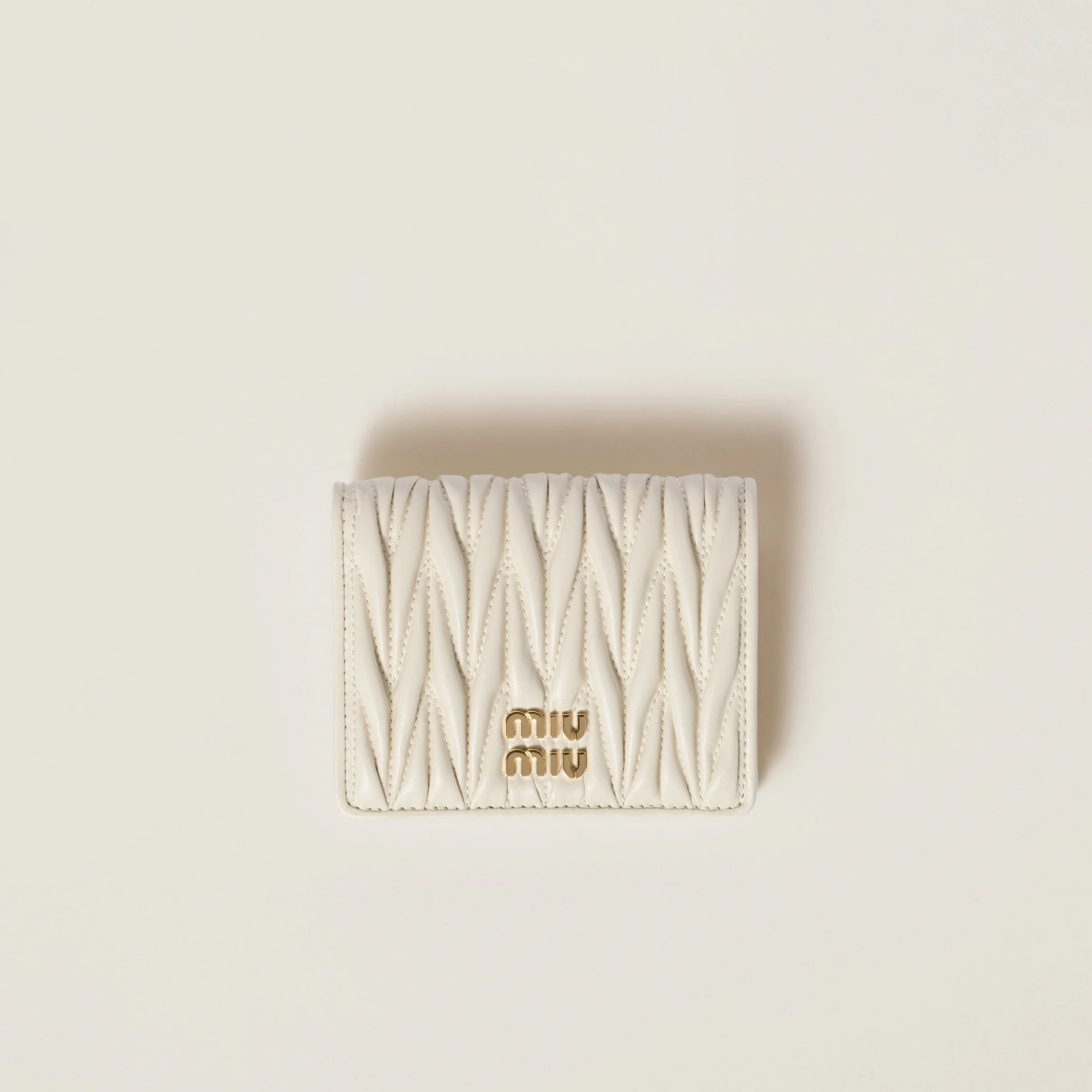 This small wallet decorated with the metal lettering logo features the brand's iconic matelasse motif characterized by a texture that creates a sophisticated, three-dimensional effect. $ Its roomy internal organization is full of card slots and compartments. - Product code: 5MV204_AFPP_F0009 - Matelasse motif - Snap closure - Metal lettering logo - One bill compartment - Three card slots - Two internal pockets - Internal coin pocket with flap - Moire lining - Imported Height 11.2cm Width 8.5cm Materials Main material: Lambskin