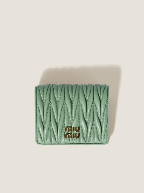 This small wallet decorated with the metal lettering logo features the brand's iconic matelasse motif characterized by a texture that creates a sophisticated, three-dimensional effect. $ Its roomy internal organization is full of card slots and compartments. - Product code: 5MV204_AFPP_F0002 - Matelasse motif - Snap closure - Metal lettering logo - One bill compartment - Three card slots - Two internal pockets - Internal coin pocket with flap - Moire lining - Imported Height 11.2cm Width 8.5cm Materials Main material: Lambskin