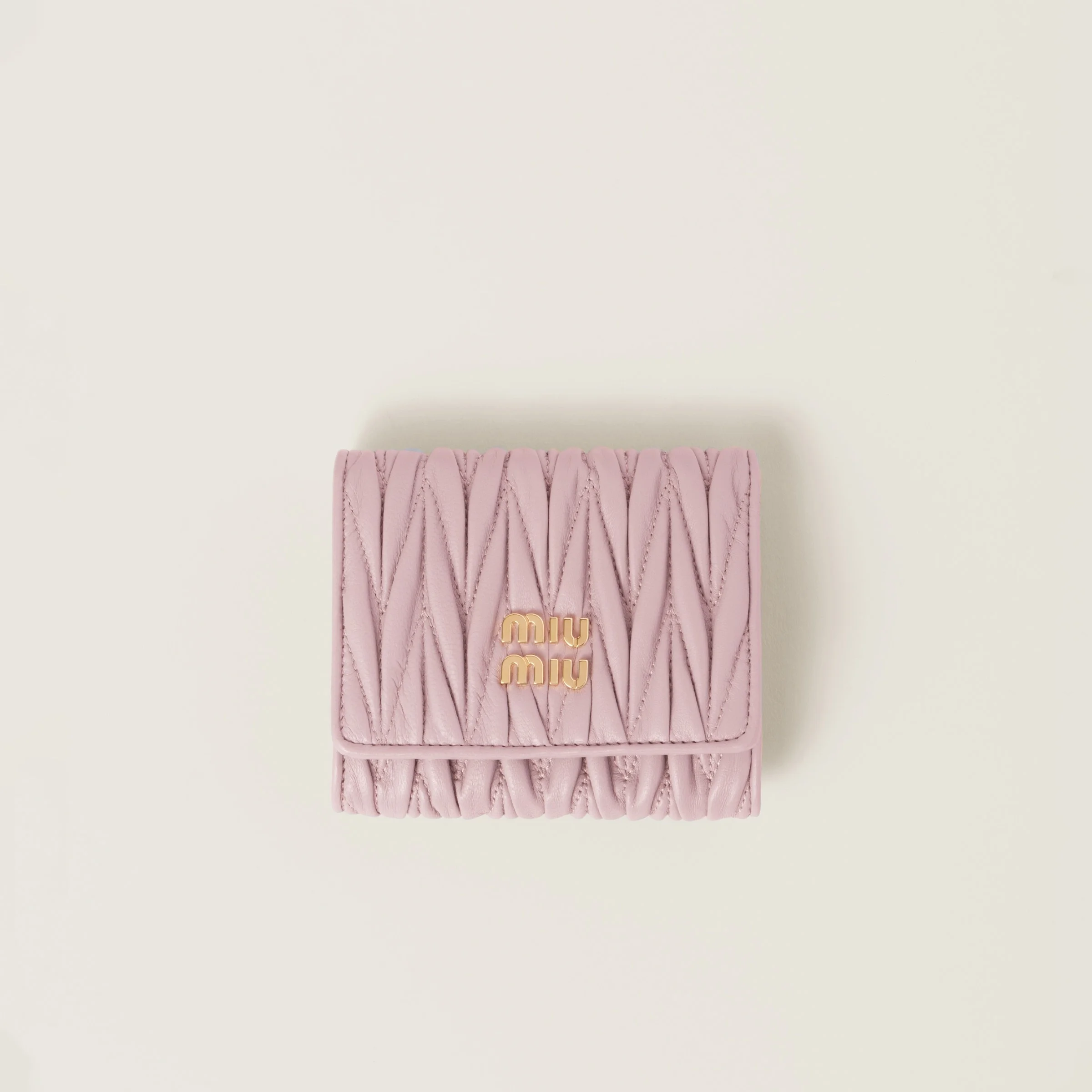 This small wallet decorated with the metal lettering logo is made of the brand's iconic matelasse leather characterized by a texture that creates a sophisticated three-dimensional effect. The practical, compact and functional wallet is full of slots and compartments. - Product code: 5MH033_AFPP_F0E18 - Matelasse workmanship - Snap closure - Metal lettering logo - One bill compartment - Four card slots - Three internal pockets - Internal coin compartment with flap - Moire lining - Imported Height 7.8cm Width 10.2cm Length 3.8cm Materials Main material: Lambskin