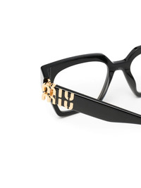square frame glasses black acetate square frame clear lenses gold-tone logo plaque curved arms These glasses come with a protective case. Composition Acetate 100% SIZE & FIT Measurement Arm Length 5.31 in(13.5 cm) Bridge Width 7.79 in(19.8 cm) Lens Diameter 2.04 in(5.2 cm) Total Width 5.51 in(14 cm)