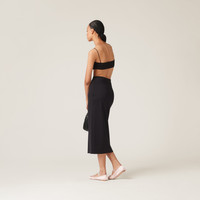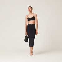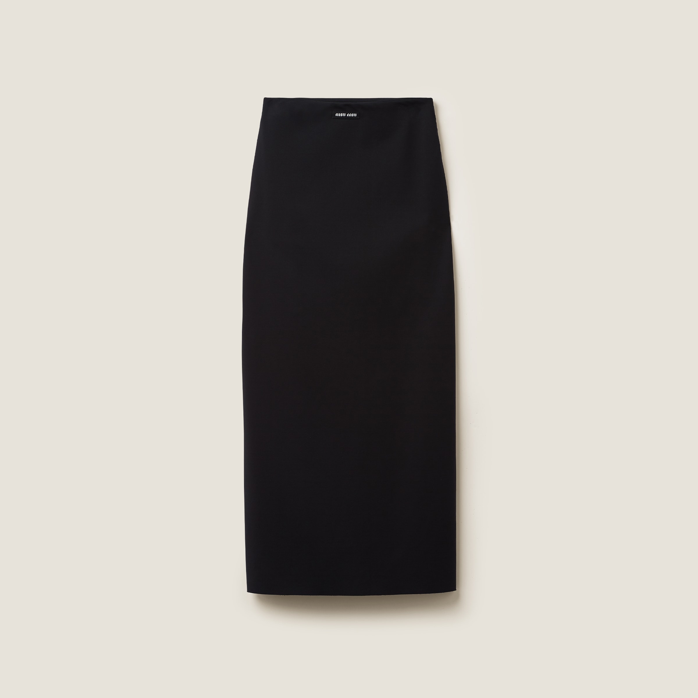Clean lines and an austere style are featured on this stretch jersey calf-length skirt defined by a straight, pencil cut. The style evokes the idea of tailoring reinterpreted with a feminine twist in a blend of tradition and references to the world of sport. - Product code: MG1893_12DK_F0002_S_231 - Pencil cut - Unlined - Side zipper closure - Knit logo label - Imported - The model is 178 cm tall and wears a size 38 Height 87cm Materials Main material: 4% Elastane 38% Polyamide 58% Recycled Polyamide