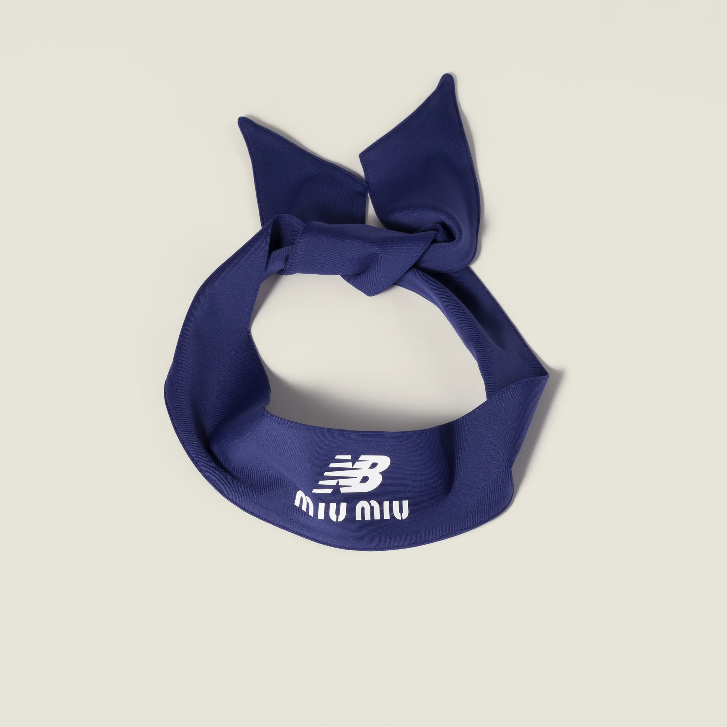 The New Balance X Miu Miu collection is inspired by sportswear, combining style and performance. References to the tennis world define the essence of this stretch technical jersey band with a sleek design embellished with 3D-effect printed logos. - Product code: 5IH098_18GE_F0X32 - Visible engraved logo - Imported Height 8.5cm Width 99cm Materials Main material: Elastane Recycled Polyester