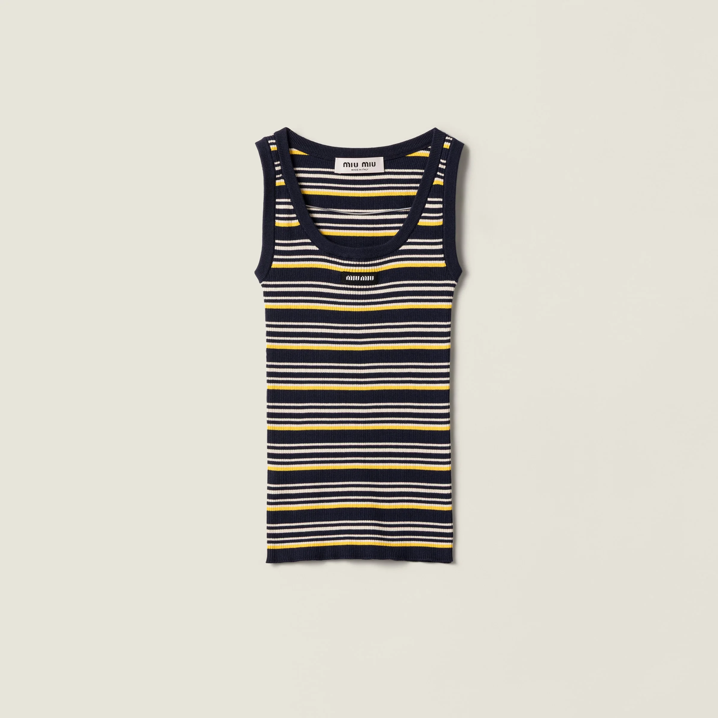 A colorful striped pattern meets the ribbed texture of this fitted cotton knit tank top, enhanced by the logo that highlights its iconic and vibrant spirit. - Product code: MMV341_1848_F0008_S_OOO - Ribbed knit - Slim fit - Sleeveless - Ribbed neckline - Logo patch - Imported - The model is 177 cm tall and wears a size 38 Height 58cm Materials Main material: 100% Cotton