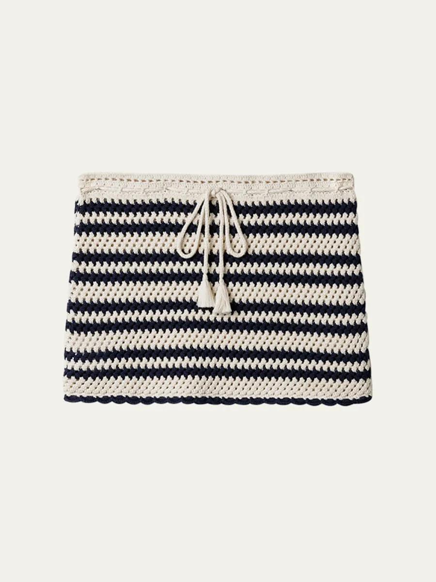 Striped Cotton Crochet Mini Skirt
