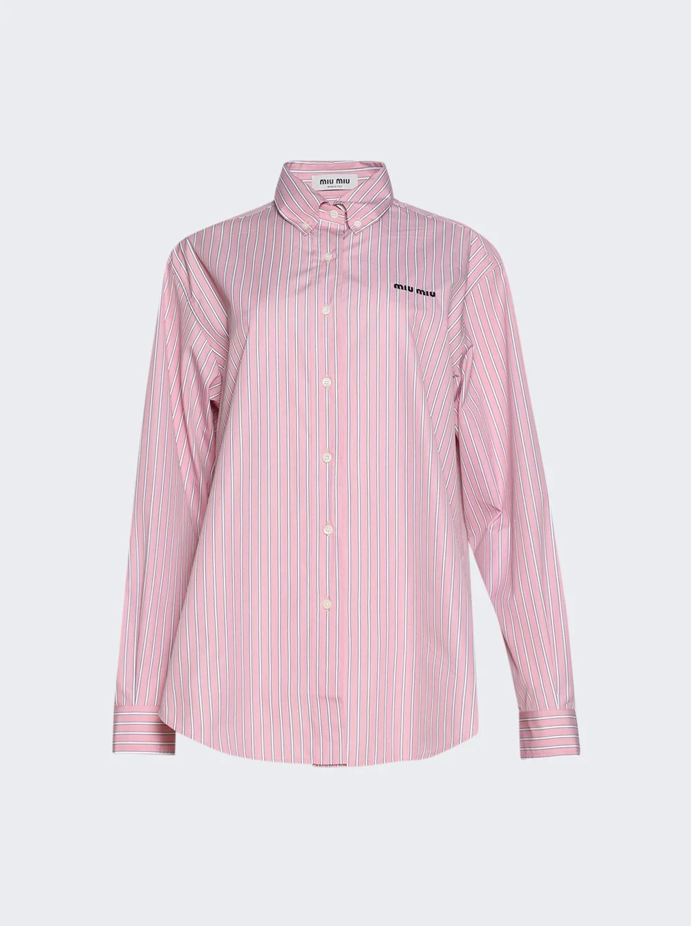 Details - Oversize fit - Button down collar - Long sleeves - Button closure - Embroidered logo on the chest - Curved hem - Care according to label - Material: 100% Cotton Vendor Color Code: Brand Style: MK2007 S OOO 180U Designer/Brand: MIU MIU