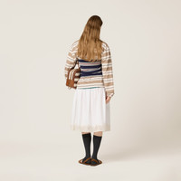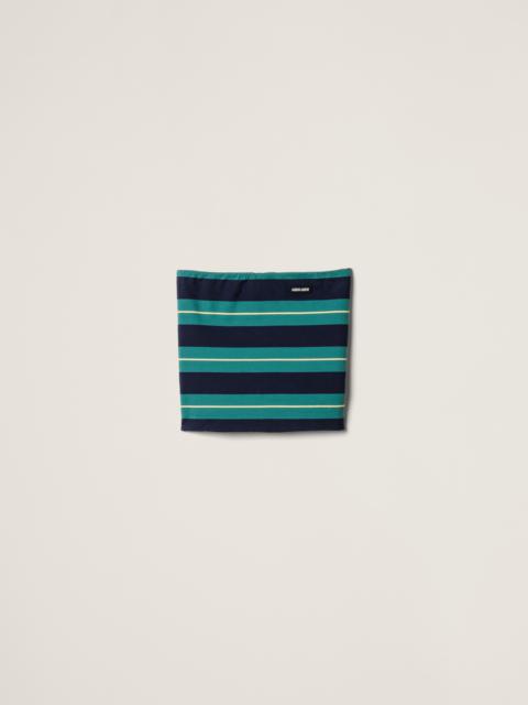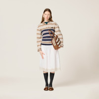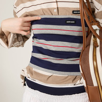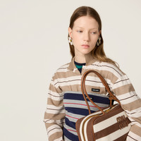 The stripe pattern, a symbol of Miu Miu style, gives this jersey top an iconic twist, making it perfect for summer looks characterized by sophisticated layering. - Product code: MJT708_14RT_F0S5G_S_OOO - Straight fit - Lined garment - Logo patch - Imported - The model is 180 cm tall and wears a size 38 Height 32cm Materials Main material: 100% Cotton