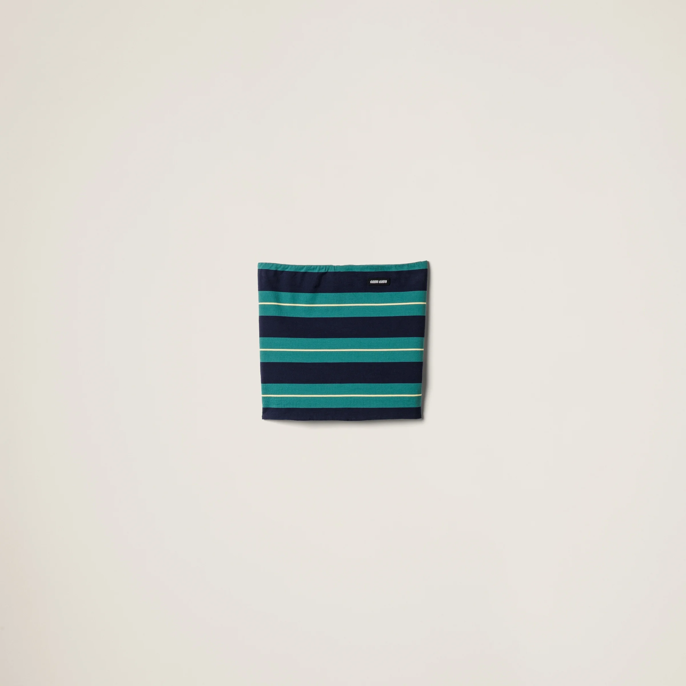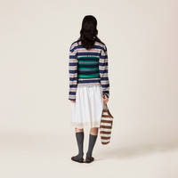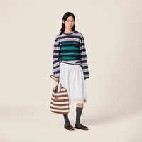 The stripe pattern, a symbol of Miu Miu style, gives this jersey top an iconic twist, making it perfect for summer looks characterized by sophisticated layering. - Product code: MJT708_14RT_F046I_S_OOO - Straight fit - Lined garment - Logo patch - Imported - The model is 178 cm tall and wears a size 38 Height 32cm Materials Main material: 100% Cotton