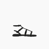 Combining the sophisticated line of ankle strap sandals with bold details, Miu Miu creates a style with modern allure full of rebellious spirit. These leather sandals are decorated with studs. - Upper with studs - Fabric logo label - EVA sole - Lug tread Product code 5X735D_ULW_F0002_F_005