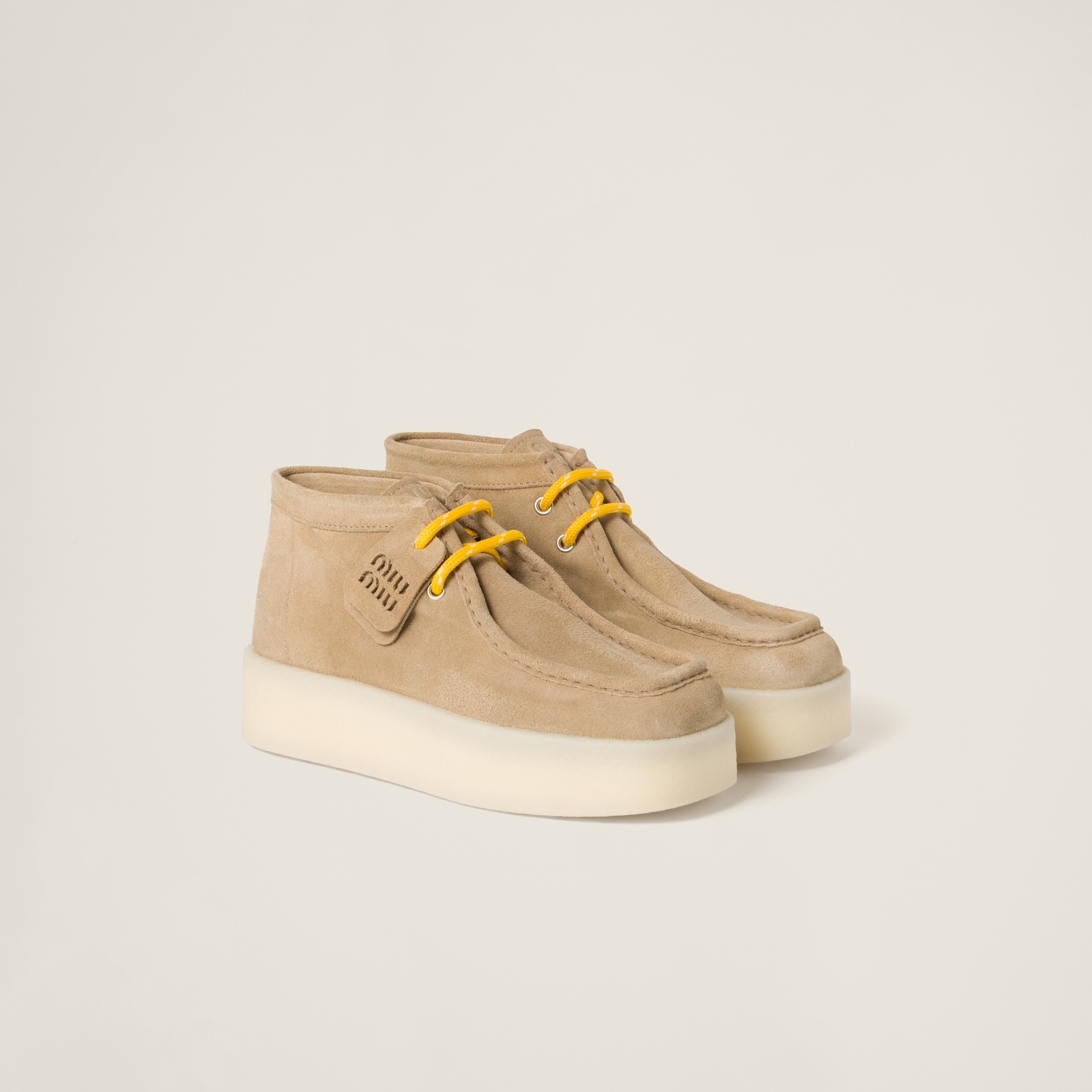 The suede ankle boots feature a delave texture, adding modernity to the classic, practical design accented with vibrant laces. - Product code: 5T263E_Z5O_F0379_F_045 - Leather lining - Embossed logo leather label on tongue and silkscreen print on insole - Lace up closure - 8.5 cm high leg - 45 mm logo rubber sole - Leather insole - Imported Materials Main material: Calfskin