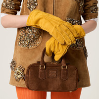 The soft texture of the suede is combines with the iconic style of the Miu Miu logo on these gloves. - Product code: 5GG225_2CSX_F0091 - Logo on label - Cashmere lining - Imported Materials Main material: Calfskin