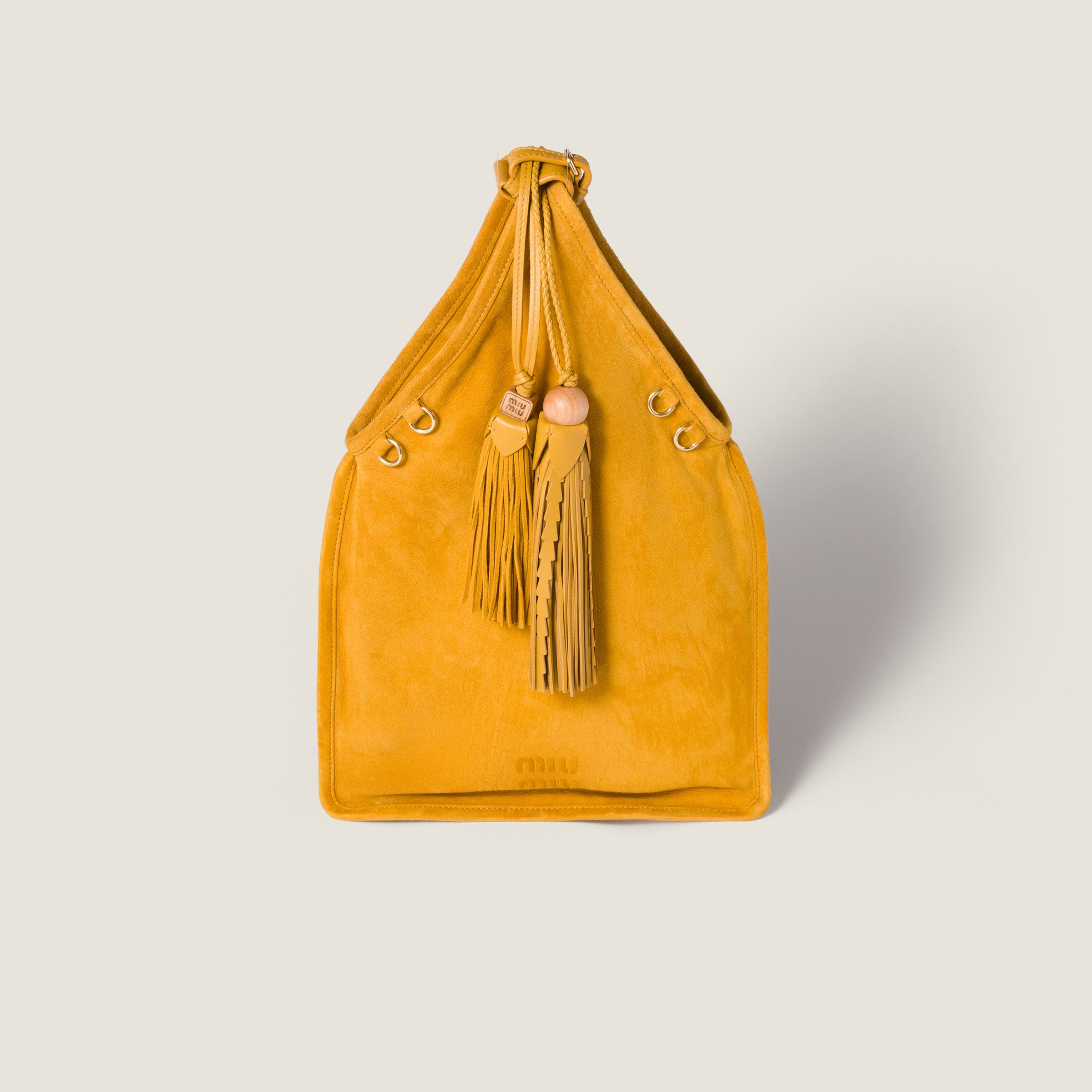 Suede handbag with tassels