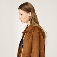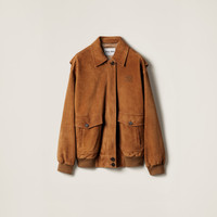 Inspired by the typical aviator style, this suede blouson jacket is characterized by elegant '80s references and the summery lightness of its weight, which gives a sense of fluidity and sophistication. - Product code: MPV940_17PW_F0401_S_OOO - Regular fit - Lined garment - Front zipper and button closure - Shirt-style collar - Straight sleeve and ribbed knit cuffs - Flapped patch pockets - -Ribbed knit hem - Embossed lettering logo - Final waxing treatment - Imported - The model is 180 cm tall and wears a size 38 Materials Main material: Lambskin