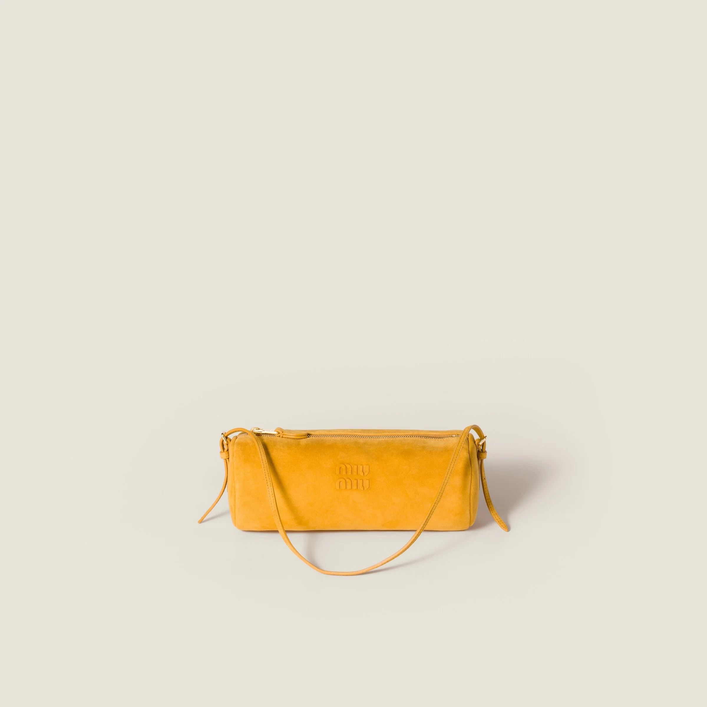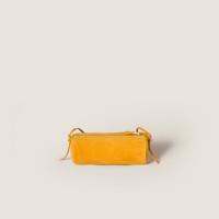 A compact and functional design characterizes this soft suede pouch. The shoulder strap adds a practical detail while the lettering logo completes the design with an iconic note. - Product code: 5NE851_ACSS_F0R55 - Detachable, adjustable leather shoulder strap - Zipper closure - Waterproof linen lining - Embossed lettering logo - Imported Height 9cm Width 22cm Length 9cm Materials Main material: Lambskin