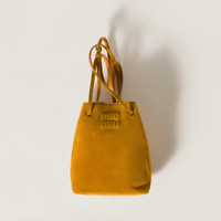 Vintage inspirations and a sleek design define this soft suede pouch, a distinctive element of Miu Miu's experimental wardrobe. - Product code: 5NF460_ACSS_F0R55 - Adjustable leather shoulder strap - One card slot - Light waterproof cotton lining - Embossed lettering logo - Imported Height 17cm Width 14cm Length 6cm Materials Main material: Lambskin