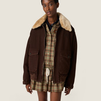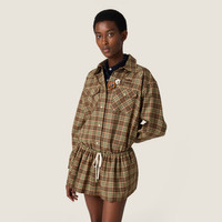 This shirt reflects Miu Miu's experimentation with menswear: The plaid pattern with a vintage mood, the relaxed fit and the embroidered tonal lettering logo define the iconic, contemporary identity. - Product code: MK1969_174R_F0C59_S_OOO - Straight fit - Shirt collar - Front snap closure - Sleeves with shirt cuff - Front pockets - Lettering logo - Imported - The model is 180 cm tall and wears a size 38 Materials Main material: 100% Virgin Wool