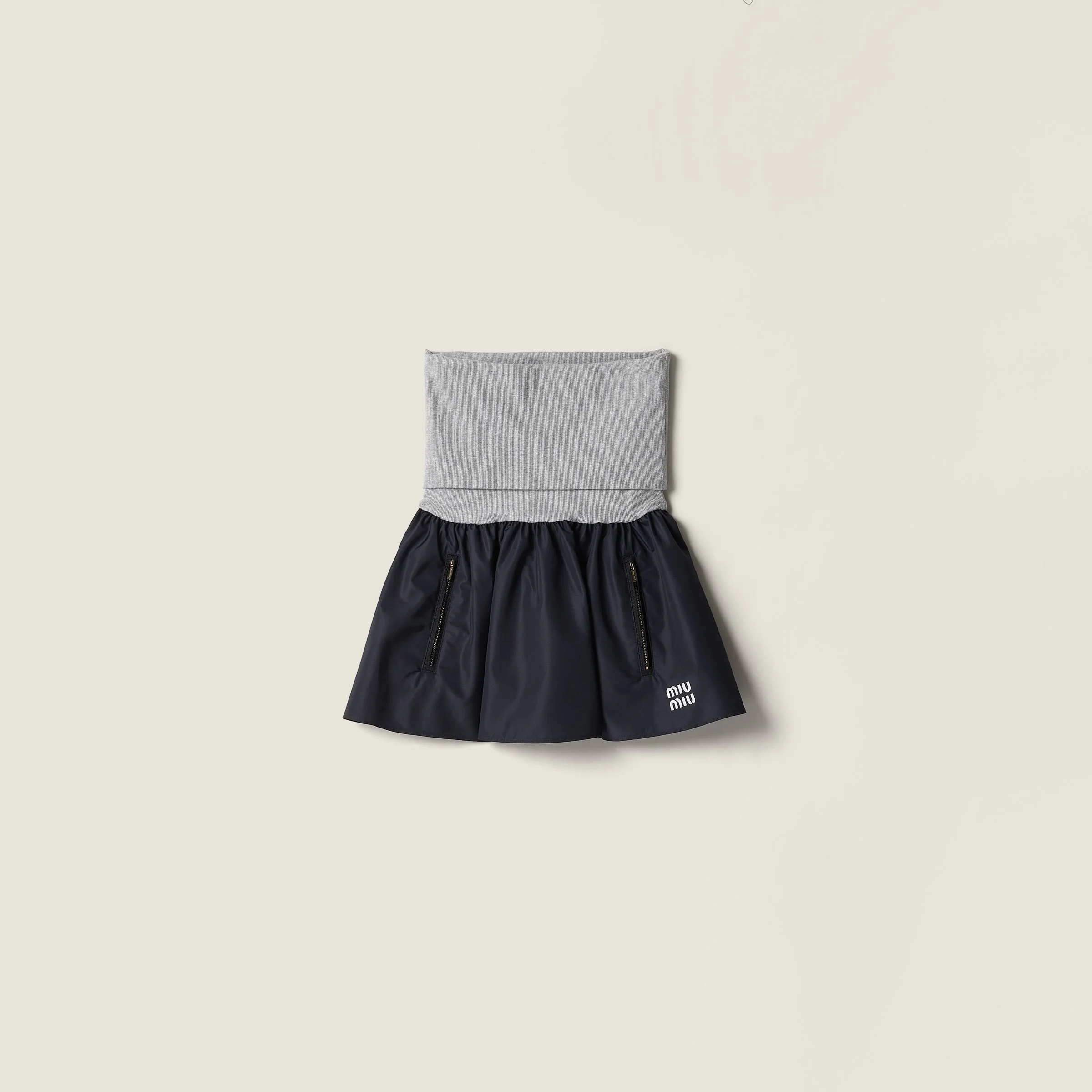 Inspired by the classic technical fabric dress, this miniskirt with a casual spirit features a sporty texture and versatile details like the zipper pockets and wide jersey waistband in a contrasting color. - Product code: MG2634_19EC_F005R_S_OOO - Flared fit - Unlined garment - Pockets with metal zippers - Wide elasticized jersey waistband - Rubberized logo - Imported - The model is 176 cm tall and wears a size 38 Height 40cm Materials Main material: 100% Recycled Polyester