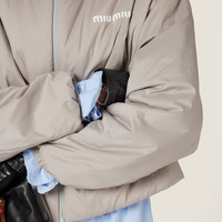 Inspired by ski outerwear, this down jacket made of technical pongee fabric meets performance and design. The garment with a lifestyle attitude features ecodown padding that makes it uniquely compact and light. - Product code: ML1156_16ML_F073X_S_OOO - Cropped silhouette - Ecodown padding - With hood - Long sleeves - Elasticized cuffs - Waxed zipper closure - Waxed zipper pockets - Elasticized drawstring hem - Rubber logo - Imported - The model is 178 cm tall and wears a size 38 Height 53cm Materials Main material: 100% Recycled Polyester