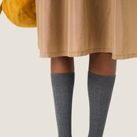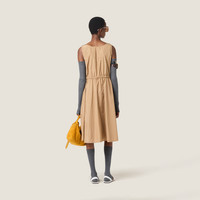 Technical silk, an emblem of Miu Miu experimentation, is distinguished by its luxurious feel and dynamic attitude that characterizes the versatile lines of this sleeveless summer dress with sporty details. - Product code: MF5873_121G_F0A68_S_OOO - Flared fit - Partially lined garment - Scoop neck - Sleeveless - Front zipper closure - Knit logo label - Imported - The model is 178 cm tall and wears a size 38 Height 100cm Materials Main material: 24% Silk 76% Recycled Polyester