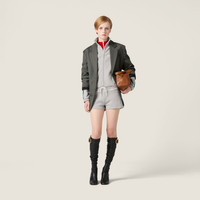 Crafted from recycled technical yarn and made with seamless construction, these shorts combine knitwear refinement with Miu Miu’s sporty spirit. Color contrasts and tailored construction shape their casual silhouette - Product code: MMP290_148O_F0Y6M_S_OOO - Interlock knit - Mini fit - Front drawstring closure - Rubber-tipped drawcord - Embroidered logo - Imported - The model is 177 cm tall and wears a size 38 Height 23cm Materials Main material: 100% Recycled Polyamide