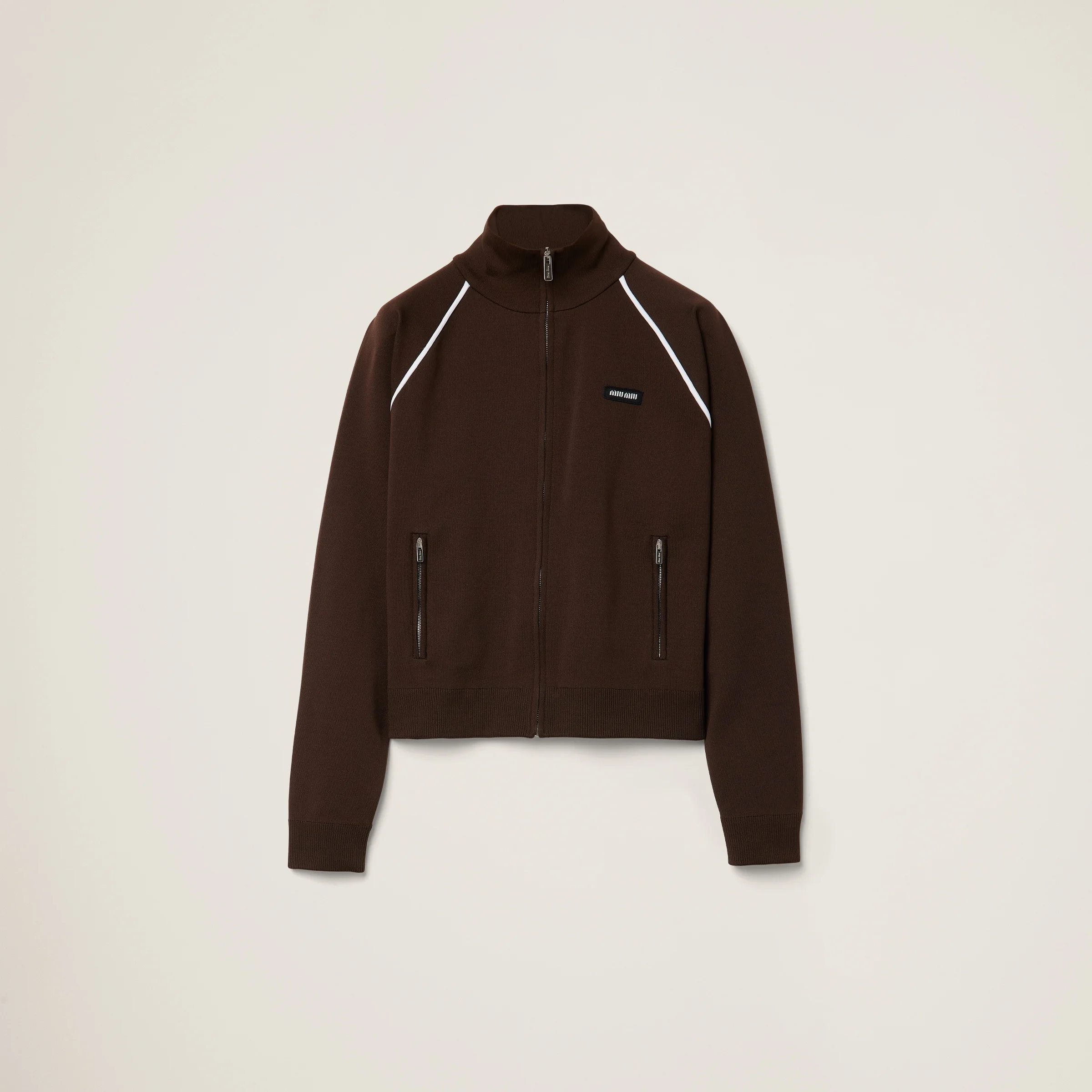 Archival inspirations enhance the character of this zipper cardigan made of recycled technical yarn enriched with details that combine knitwear and a tailored look. - Product code: MMF958_16WY_F080J_S_OOO - Interlock knit - Menswear fit - Long sleeves - Ribbed knit collar - Raglan shoulder - Ribbed knit cuffs and hem - Front zipper closure - Welt pockets - Knit logo patch - Imported - The model is 180 cm tall and wears a size 38 Height 50cm Materials Main material: 100% Recycled Polyamide