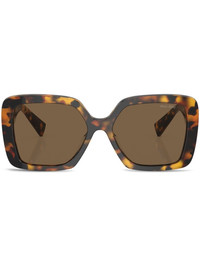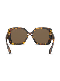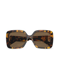 tortoiseshell-effect oversize-frame sunglasses Highlights - Havana brown - Acetate - Tortoiseshell effect - Gold-tone logo lettering - Brown tinted lenses - Oversize frame - Raised bridge - Straight arms - Curved tips - These glasses come with a protective case. Composition Acetate 100% SIZE & FIT Measurement Arm Length 5.51 in(14 cm) Bridge Width 0.66 in(1.7 cm) Lens Diameter 2.2 in(5.6 cm)
