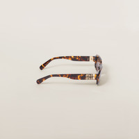 Acetate sunglasses with a soft rectangular design and sophisticated attitude. The narrow silhouette of the frame front is enhanced by the vertical Miu Miu logo that is integrated into the hinge of the straight temples. - Product code: SMU08Z_EVAU_FE06B_C_053 - Acetate frame front - Color: Honey Tortoiseshell - Frame compatible with graduated lenses - 100% UVA / UVB protection - Standard Fit - Lens-nose-temple measurement: 53-20-140 mm - Article comes with dedicated packaging - Other available colors - Imported