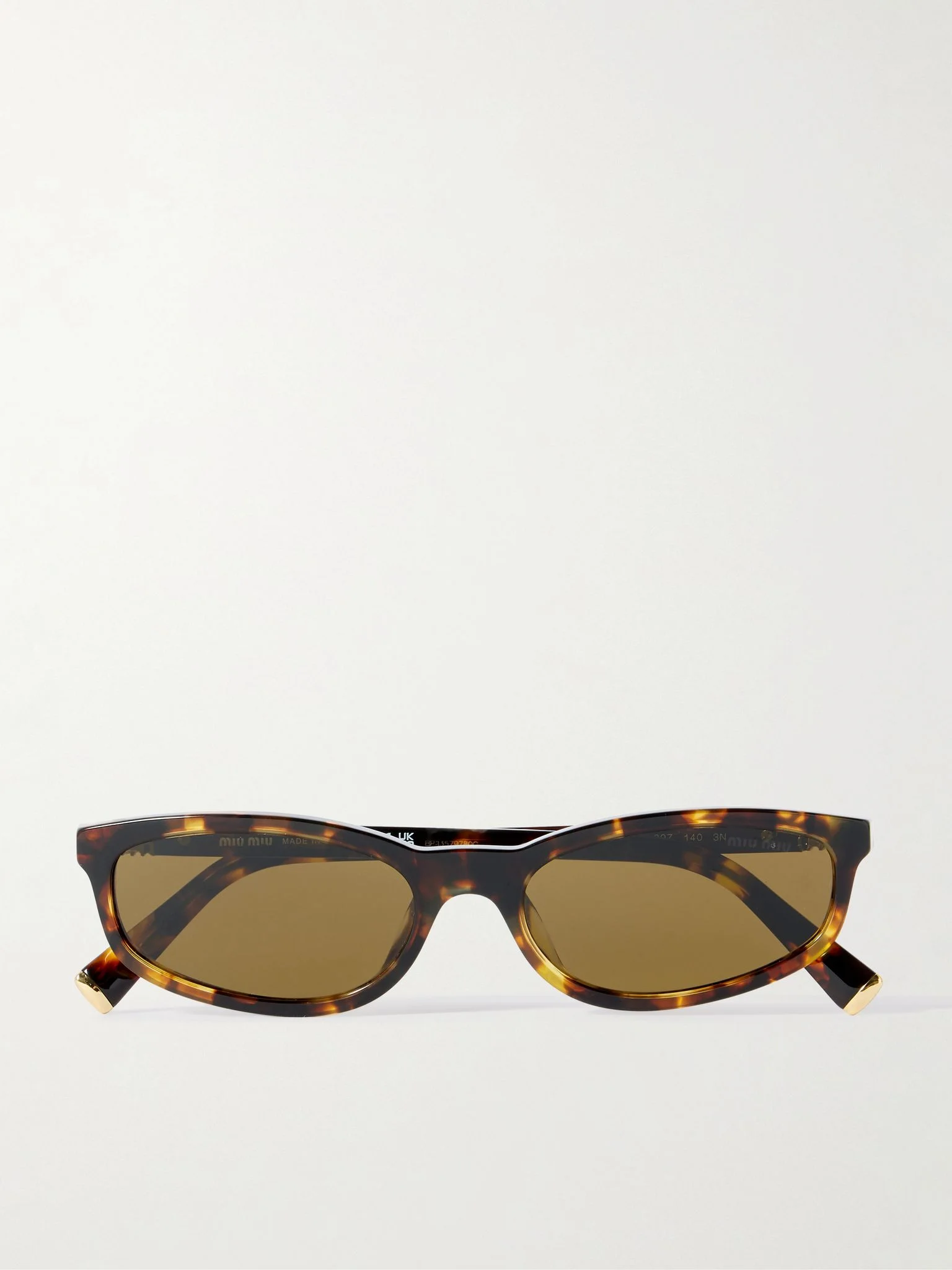 Miu Miu's sunglasses are minimally designed and effortlessly cool, so they're bound to be your next go-to pair. Made from tortoiseshell acetate, they have oval frames channeling '90s styles and feature gold-tone accents, including the logo at the temples. Details & Care - Tortoiseshell acetate - Come with a case - 100% UV protection