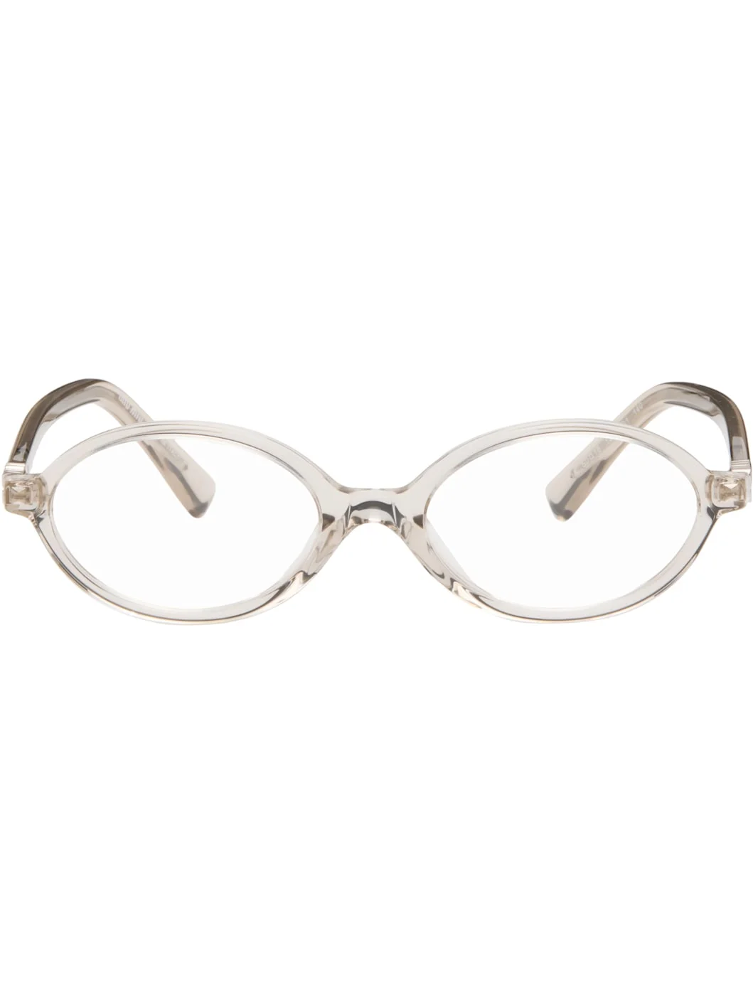 Oval transparent acetate-frame optical glasses. · Integrated nose pads · Logo hardware at temples · Core wire at temples · Leather case included · Size: 50.18 140 Supplier color: Hemp transparent Acetate. Made in Italy 261209F004025