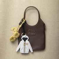 Miu Miu wardrobe essentials are transformed into precious tricks to use with bags for exclusive combinations. The iconic hoodie becomes the star of this leather key ring, a symbol of personality and experimentation. - Product code: 5TL530_2CUJ_F0031 - With ring - Mirror on the back - Visible logo - Imported Height 13.5cm Materials Main material: Calfskin