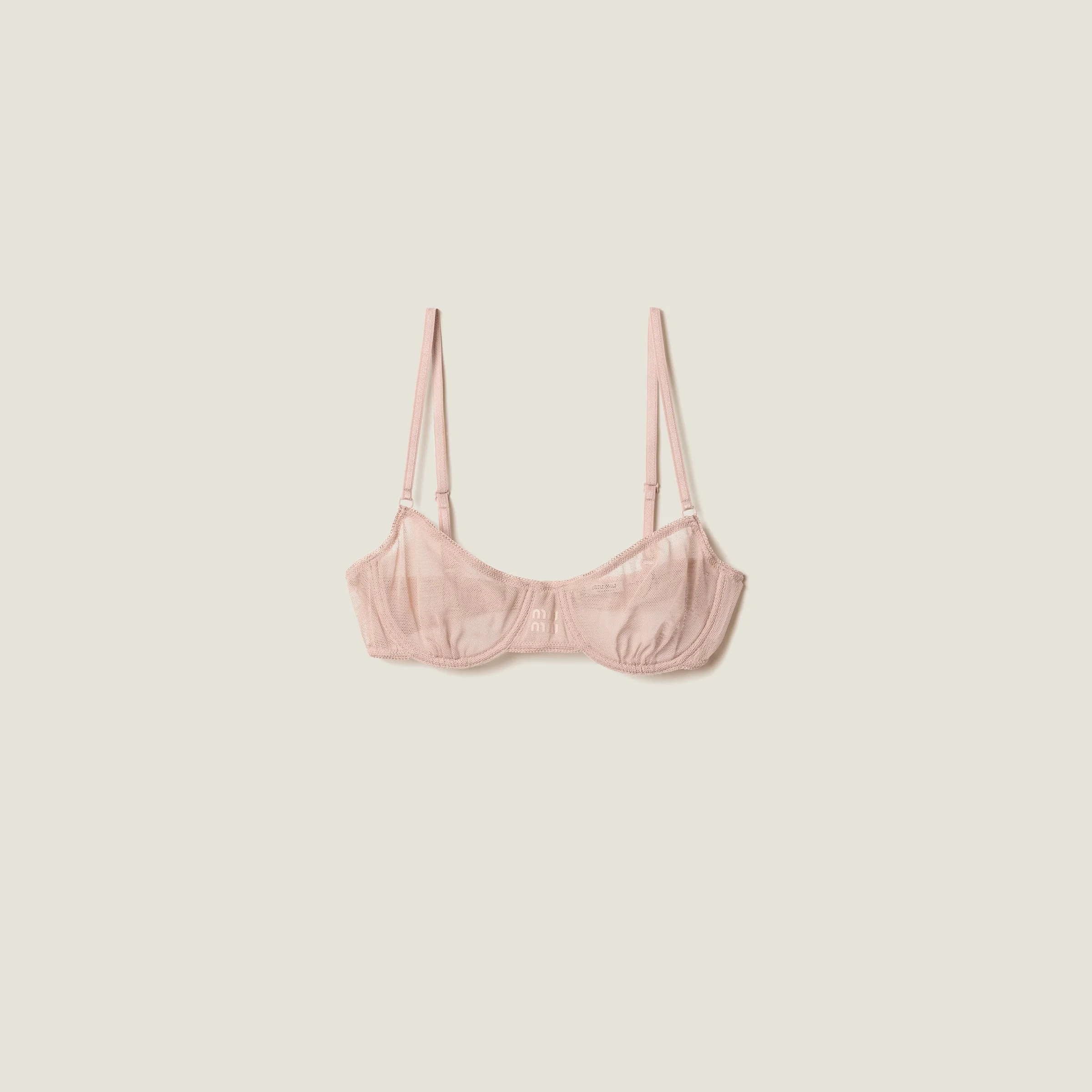 The Miu Miu logo stands out on the sleek, refined lines of this tulle bra, thanks to its iconic and distinctive touch. - Product code: RG9478_13RG_F0A48_S_232 - Back closure with hooks - Miu Miu logo - Imported - The model is 176 cm tall and wears a size 38 Materials Main material: 90% Cotton 10% Elastane
