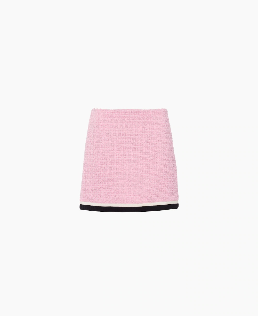 Cod. MG1814_11D1_F0028 Rigor and freedom, modernism and classicism: this tweed miniskirt combines different universes that make up Miu Miu's DNA. A hybrid design in a traditional menswear fabric is reimagined, and the formal line of classic tailoring is transformed into a new expression of femininity. - Mini fit - Side zipper closure with hook - Grosgrain ribbon on the hem Height 36 cm COMPOSITION 93% VIRGIN WOOL 7% POLYAMIDE LINING: 100% SILK