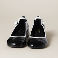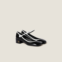 This iconic Mary Jane style is reinterpreted in this soft patent leather version in classic shades and with a gold-tone logo on the heel that expresses Miu Miu's retro inspiration and its contemporary attitude. - Product code: 5I435E_06E_F0967_F_A035 - Upper with strap and covered button - Leather sole - Leather-covered heel with metal logo, height 35 mm - Screen-printed logo - Imported Materials Main material: Calfskin